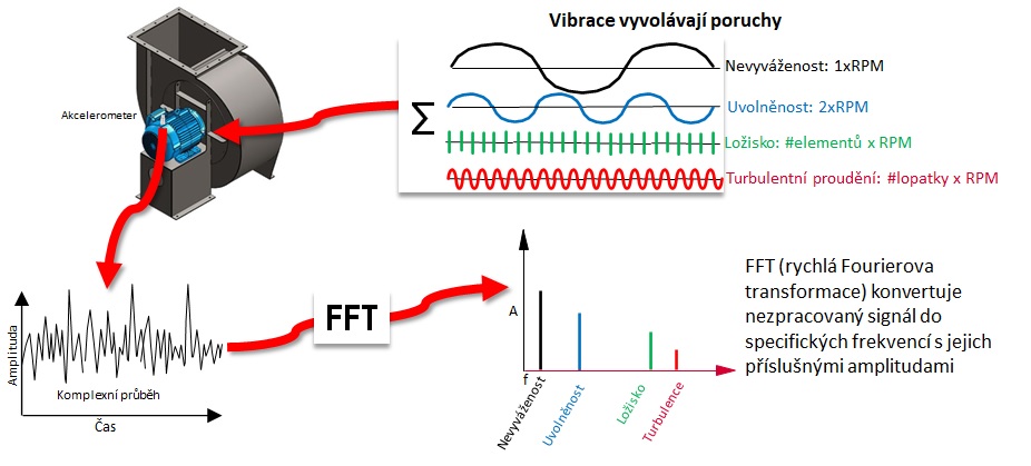 Vibrations are a characteristic side effect of all rotating machines. They arise mainly due to imbalance, misalignment, mechanical losses, friction, bearing wear, cavitation, eccentricity, turbulent flow and many other phenomena. In circumstances where the machine is affected by normal operating vibrations, its operability needn`t be compromised in the short and even the long term. However, if some parts of the machine are overloaded, the vibration level may exceed the permissible level. This condition always has a negative effect on the technical condition and operability of the machine. A certain idea of the condition of the machine can be obtained by visual inspection of its individual parts or, for example, by using a simple vibration measurement, where the overall vibration level is sensed only. Unfortunately, this method of inspection is insufficient in most cases because it cannot detect a specific worn component or source of overload. Detailed information on the negative effects can only be obtained by comprehensive diagnostics in the entire frequency spectrum using the Dynamix system.