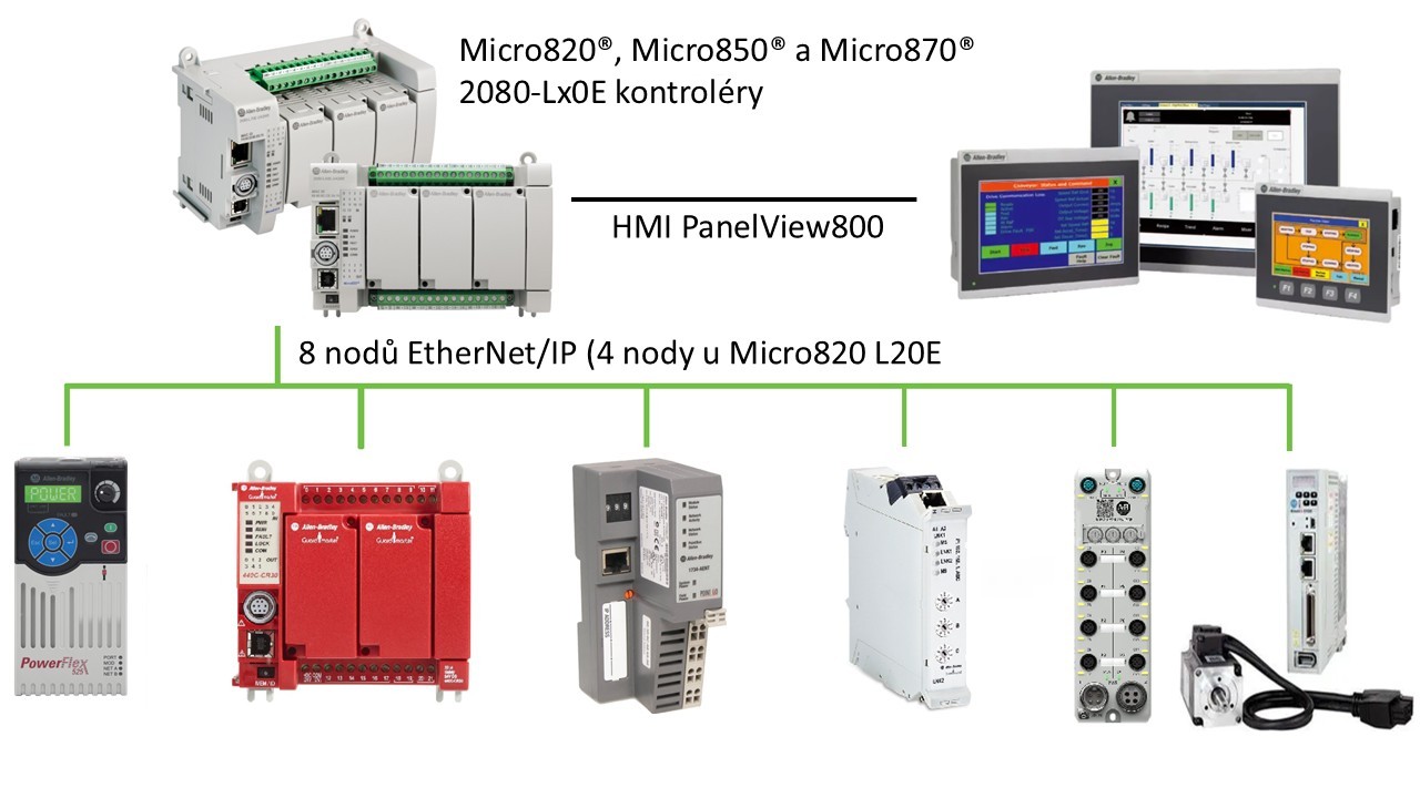 - EtherNet/IP Class 1: L20E: da (do 4 vozlišča); LC20: ne podpira.